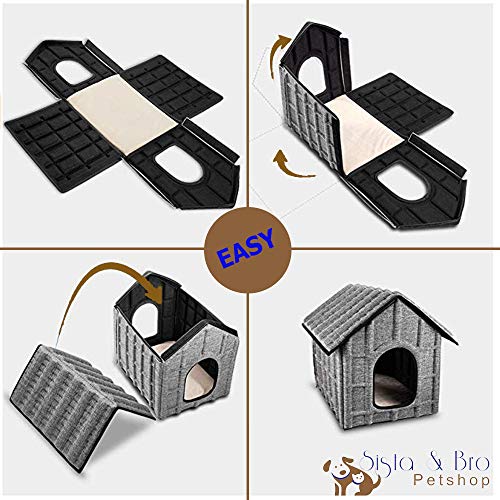 Casa Cabana para gato exterior o interior, material impermeable + cama interior suave y cómoda, extraíble plegable fácil de poner 50 x 42 x 42 cm para gatos conejos cachorros perros.