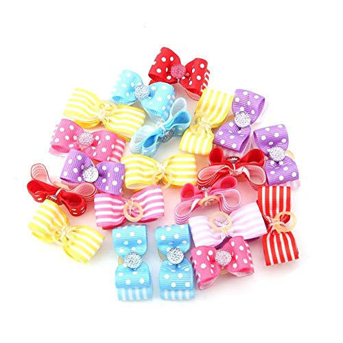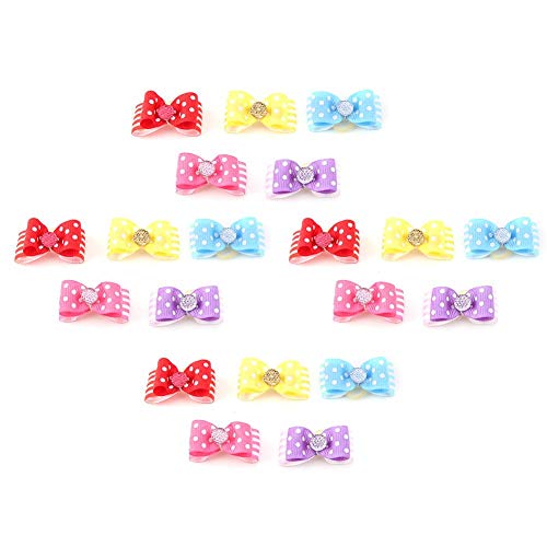 Pasamer 20pcs Pet Puppy Polka Dot Hair Bows Hair Rope Cat Dog Teddy Maltese Hair Band Headwear Accesorios de Aseo Rojo Amarillo Púrpura Rosa Azul