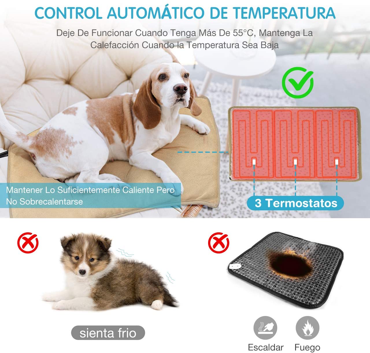 - ❤ Apagado Automático con Termostatos: con 3 termostatos incorporados, la manta eléctrica para perro dejará de funcionar automáticamente cuando la temperatura sea demasiado alta por encima de 55 ℃, y continuará funcionando cuando la temperatura baje, lo que puede evitar el sobrecalentamiento y el escaldado. de la mascota, sin riesgo de incendio desde la fuente.