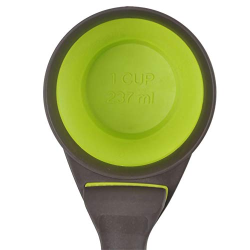 Cuchara 3 en 1 para alimentos, 237 ml Plegable Clip de cuchara medidora de alimentos para mascotas Alimentación de almacenamiento y riego Suministros para el hogar al aire libre, verde 1 taza / 8 oz