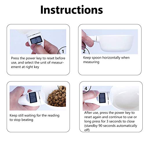 - Display Pantalla de visualización digital Escala digital de cuchara con pantalla, herramienta ideal para medir el peso de los alimentos y el agua de las mascotas. Controle la dieta de su mascota para evitar que su mascota coma demasiado y afecte su salud.