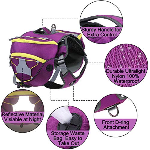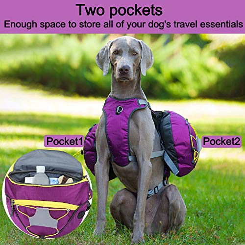HAPPY HACHI Mochila Perro Arnés Senderismo Desmontable Bolsa Sillín Portador Ajuste para Perro Mediano Grande Paquete Perro Viajar Cámping al Aire Libre (M, Morado)
