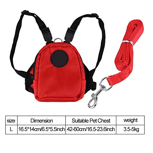 Arnés para Mochila para Perros, 2 tamaños Mochila para Mascotas para Perros pequeños Bolsa de Almacenamiento para refrigerios Lindas Bolsas de sillín para Mascotas con Correa para Perros(L-Rojo)