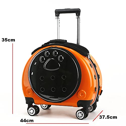 - Bolsa para mascotas duradera: esta mochila para mascotas con carrito está hecha de PC. Espacio espacioso: 44 x 37,5 x 35 cm. Peso cargable: ≤12 kg (mida el tamaño y el peso de la mascota antes de comprar este producto). Brinde la máxima comodidad y comodidad a sus mascotas al viajar y acampar.