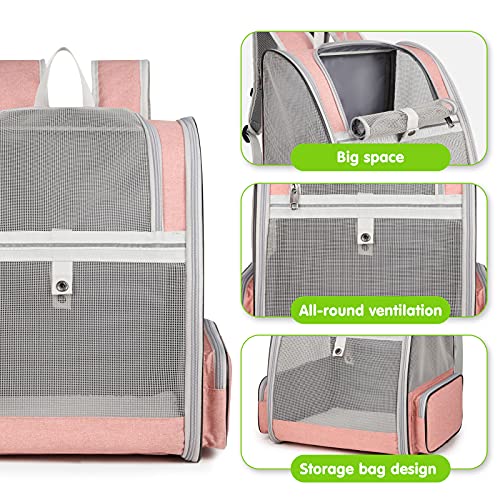 PETCUTE Transportin Gato,Plegable Mochilas para Gatos y Perro,Malla Completa Transpirable Bolsa Transporte con Estructura de Alambre, Transportin Estable para Viaje Aprobada por Aerolínea Rosa