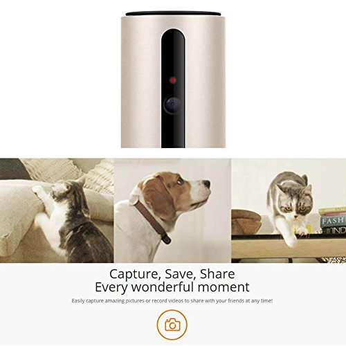 - Cámara HD y visión nocturna: descubre la vida secreta de tu mascota cuando no estás en casa. Con transmisión de vídeo HD de 720p, una visión de gran angular de 120°