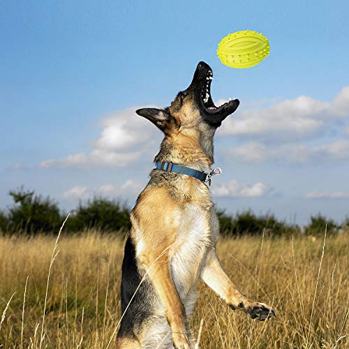- 。◕‿◕。 Divertido juego de juguetes para masticar cachorros: este juego incluye los juguetes para perros más populares, que incluyen 1 bola de rugby de rugby de 1 pieza, 1 pieza de goma, 1 pieza giratoria colorida, 1 pieza de juguete con forma de hueso, 1 unidad de barra de sonido de goma