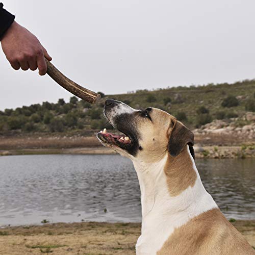 Asta de Ciervo para Perros y Cachorros. Mordedor ecológico Perros 100% Natural, Recogida a pie en los Montes de Toledo. Juguete Perro. Masticable de Larga duración (S)