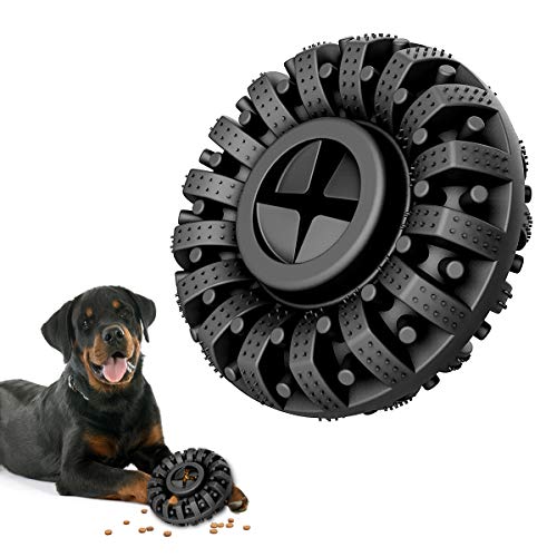 - Resistente y Duradero - Hecho de caucho natural sin BPA, seguro y no tóxico para garantizar una masticación segura para los perros. Este tipo de neumático de goma maciza resistente ha sido cuidadosamente diseñado para atraer la atención del perro, es duradero y muy adecuado para masticadores agresivos.