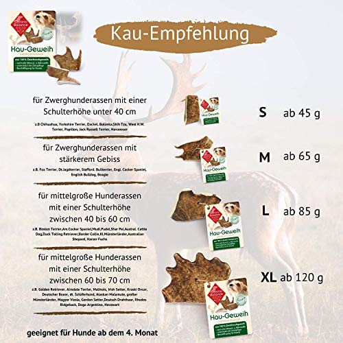 - Calidad: la cornamenta de ciervo se compone solo de varillas de cornamenta procedentes de bosques alemanes, sin aditivos artificiales, con minerales y nutrientes (magnesio, calcio, fósforo, hierro).