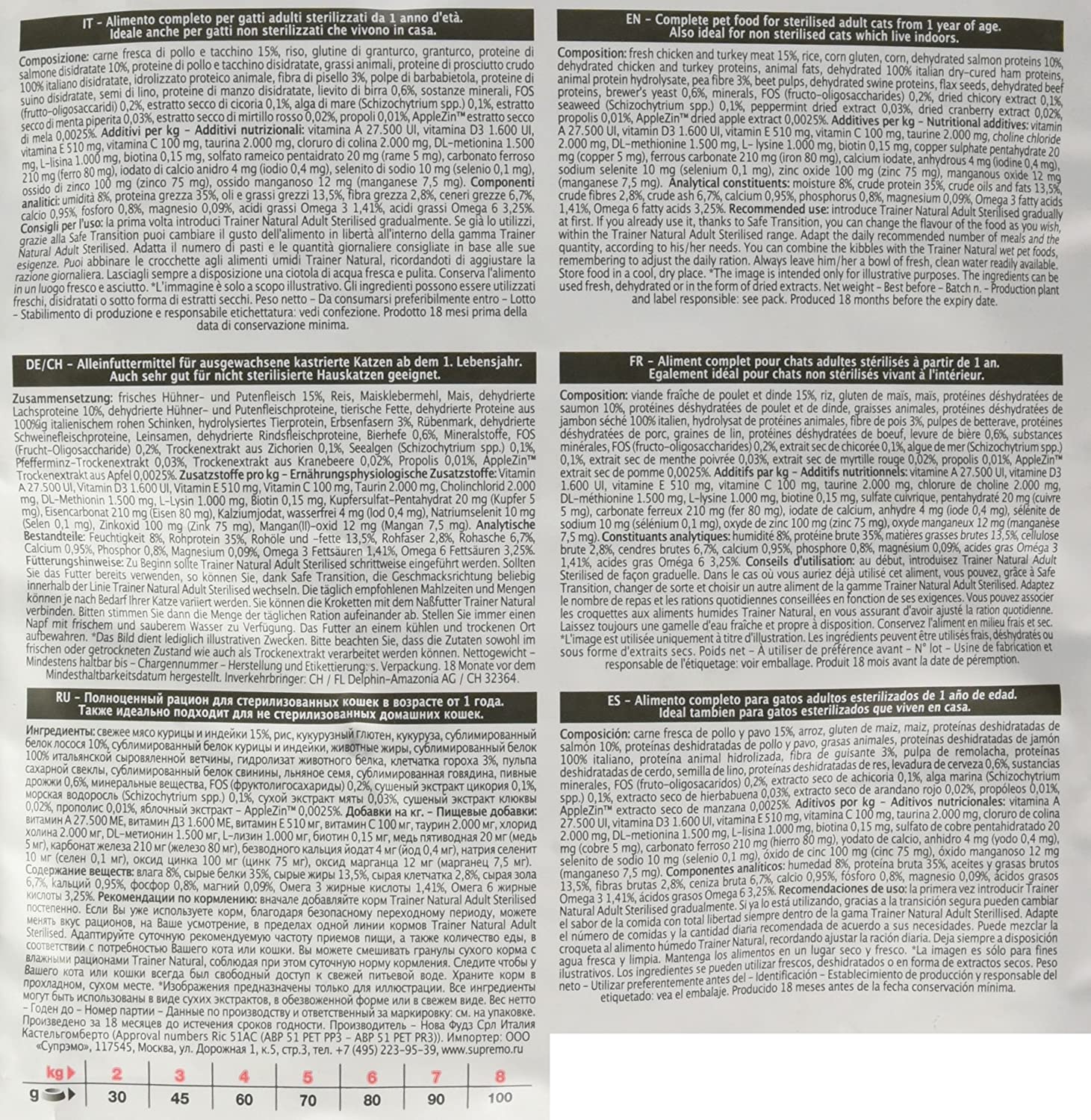 - La moderna formulación hace ahora posible asimilar el instinto ancestral del gato a cambiar de gusto alternando las diferentes referencias "adulto" con total libertad y seguridad, sin realizar un paso gradual (trainer safe transition)