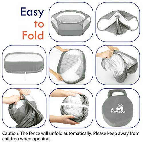 Pawaboo Valla de Animales Portátil de Oxford, Parque de Animales Plegable con Tres Varillas Metálicas y Amplia Abertura para Erizos Ardillas Gatos Dragón y Conejos - Gris