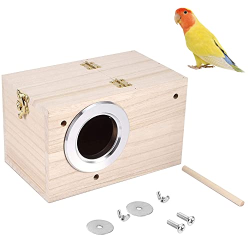 POPETPOP Caja de Nido de Pájaros de Madera, Casa de Estación de Alimentación de Anidación de Aves, Ventana de Visión Clara de Loro (Tamaño Pequeño)