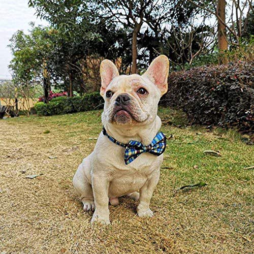 - Bonito diseño de pajarita: cada pajarita se fija al cuello con una correa elástica. La pajarita se puede quitar del cuello. La pajarita está cosida a mano y está hecha de algodón y no daña la piel de tu mascota.