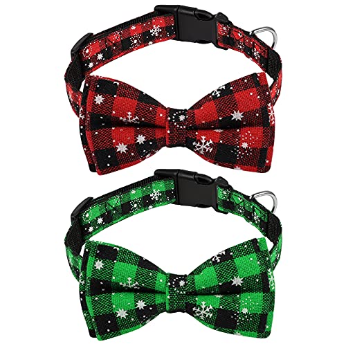 LUTER 2 Collares de Perro Copos Nieve a Cuadros Clásicos Navideños con Pajarita, Collar de Perro a Cuadros Verde y Rojo Ajustable con Copos de Nieve para Perros, Gatos y Otras Mascotas (Medio)