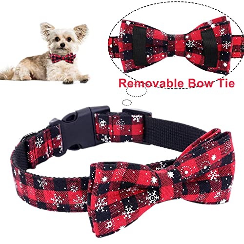 - 【Diseño de copo de nieve a cuadros clásico】 Diseño de patrón de copo de nieve a cuadros con estilo clásico, estilo único y nunca desactualizado, moda y novedad. la pajarita se puede quitar del cuello. Los clásicos elementos de color navideño crean un fuerte ambiente festivo para la Navidad, es el mejor regalo para tus mascotas.