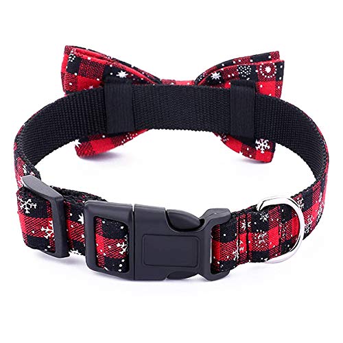 Collar de Perro con Pajarita, clásico Collar de Perro de Copo de Nieve de Cuadros navideños con Hebilla Ajustable para Perros pequeños, medianos, Gatos Grandes, Mascotas (Rojo, S)