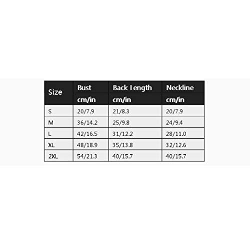- Tallas: Hay 5 tallas disponibles: S, M, L, XL, XXL. Mide la circunferencia del cuello, el pecho y la espalda del perro para elegir el tamaño correcto. Se adapta a perros de diferentes tamaños: pequeños, medianos, grandes, como Teddy, Poodle, Bulldog, Labrador, Golden Retriever, etc. Como este material no es elástico, si tu perro es fuerte y gordo, puedes aumentar una talla para asegurarte de que esté cómodo.