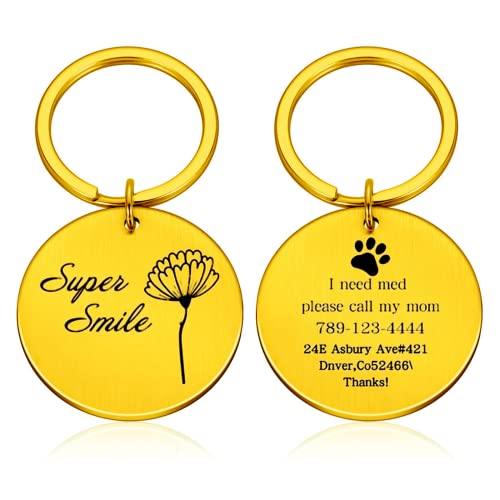 - El llavero está hecho de acero inoxidable con grabado. El contenido personalizado se puede grabar en la parte delantera y trasera de la etiqueta. Puede grabar fotos y texto juntos.
