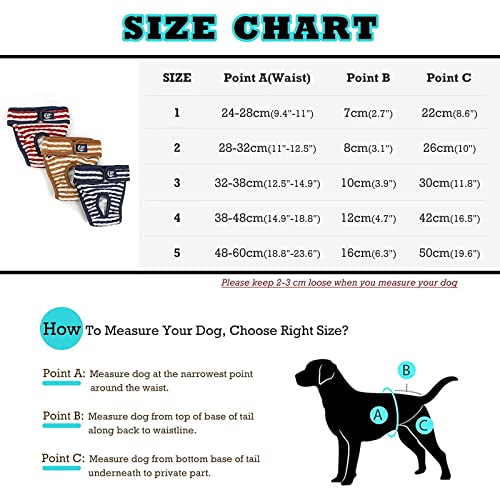 - TAMAÑO: #1-Circunferencia de la cintura 24-28cm(9.4"-11"); 3 pañales para perros de diferentes colores en un paquete, puedes cambiarlo para tu mascota todos los días; que es útil para cachorros no entrenados, hembras en celo y perros que sufren de incontinencia o micción por excitación.