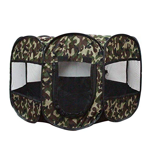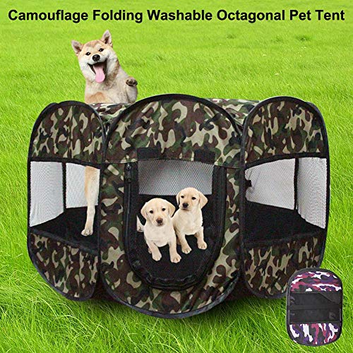 Parque Infantil portátil Plegable para Mascotas | Camuflaje Lavable Octogonal Tienda de Mascotas Perrera | Uso Interior/Exterior | Resistente al Agua | Funda de Sombra extraíble | Tamaño Mediano