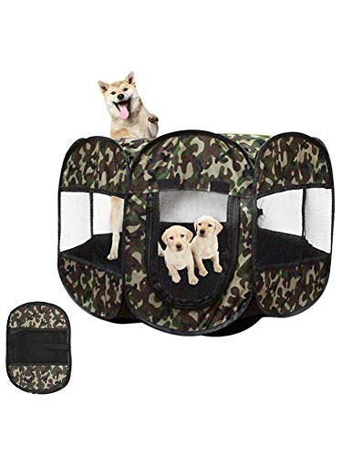 tackjoke Parque Infantil Portátil para Mascotas, Parque Cachorro Octogonal Plegable para Camuflaje con Cubierta De Malla De Perrera De 8 Paneles, Valla Impermeable Y Lavable para Tienda De Right