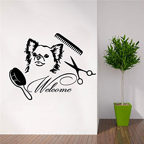 artaslf Calcomanía de pared para peluquería de perros pegatina de vinilo salón de peluquería mascotas tienda de mascotas cachorros Mural salón peluquería de interiores de animales decoración 80x56cm