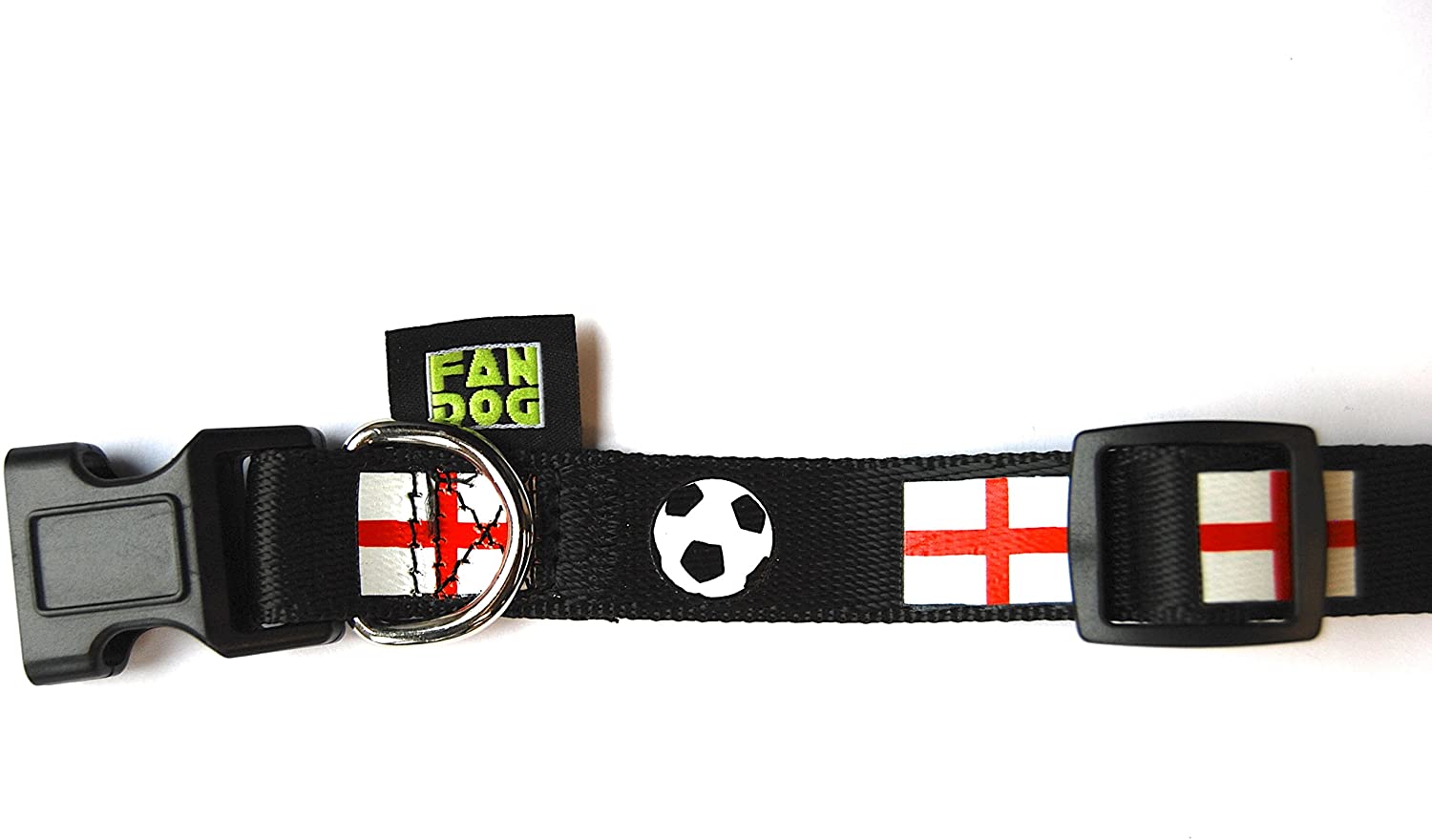 FanDog - Collar para Perro con Pelotas de fútbol y Bandera Nacional Inglesa para Aficionados al fútbol (Talla M)