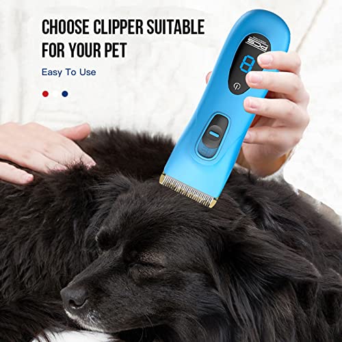 Foern Cortadora de Perros Profesional para el Aseo con Cuchilla de Cerámica, Cortadora de Pelo Grueso para Mascotas Recargable, de Bajo Ruido, para Perros Pequeños y Grandes, Gatos,Blue