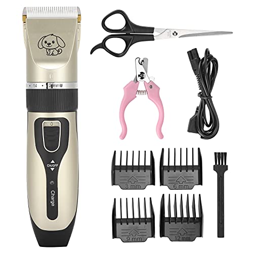 Broche del pelo Clippers perro, Peluquería Canina Clippers con 4 peine, de bajo ruido for mascotas pelo Trimmer recargable, con unas tijeras peine mejor cortadora de cabello for mascotas Perros Gatos