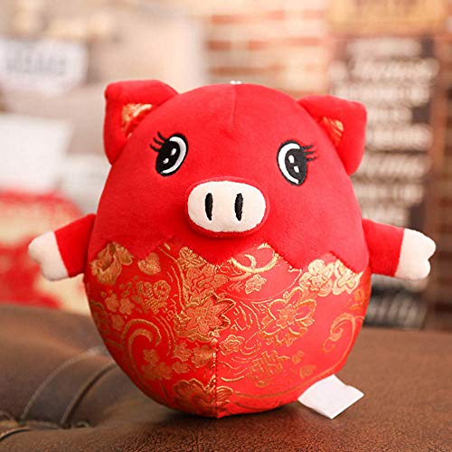 Ylout Lindo Peluche De Dibujos Animados De Cerdo, Mascota del Zodiaco Año del Cerdo Muñeca Año Nuevo Chino Cerdo Suerte Riqueza Muñeca Suave Feliz Regalo
