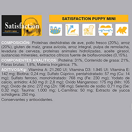 Satisfaction puppy mini 3 kg - para cachorros de razas pequeñas (de peso adulto 1,5 a 10 Kg)