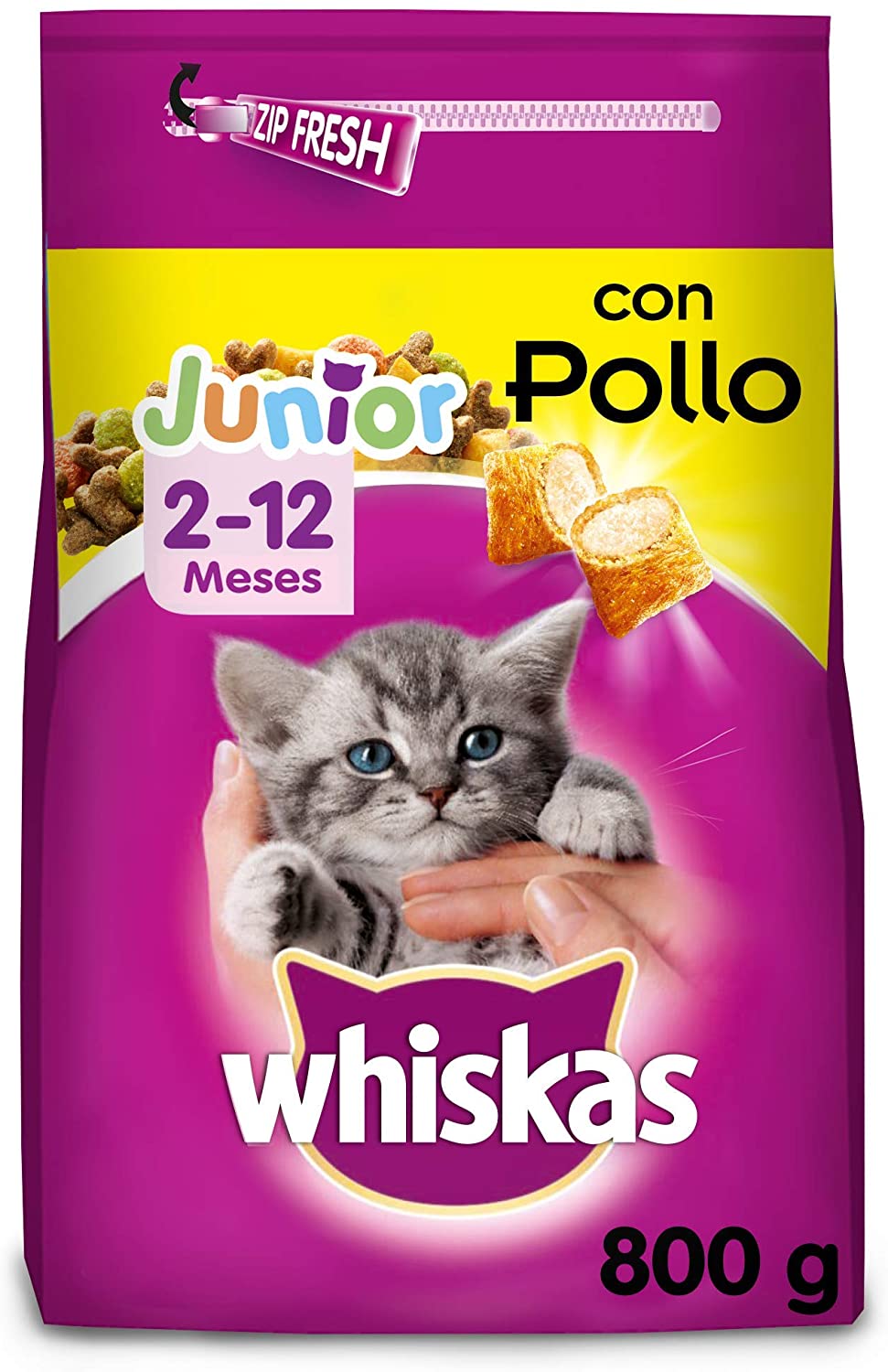 Whiskas Pienso para gatos junior con sabor pollo de 800 g (Pack de 5)