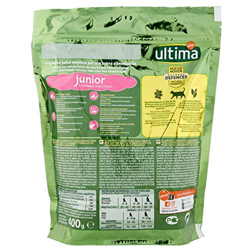 Ultima Pienso para Gatos Junior de 2 a 12 Meses con Pollo, Pack de 6 x 400 gr - Total 2.4 kg