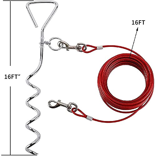 MNNE Estacas de Amarre para Perros,Piqueta Enganche al Suelo para Perro Anclajes para Tierra Cuerda para Perros Espiral Amarre el Cable y la estaca Reflectante Accesorios de Cadena Correa de 16FT Red