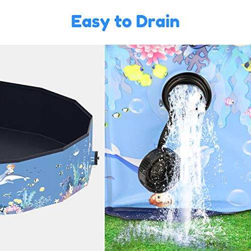 - Fácil de transportar y almacenar: esta piscina para perros tiene un diseño plegable, es rápido para drenar el agua y es fácil de almacenar, puede llevarla para sus mascotas o niños pequeños / niños en todas partes, ideal para viajes o vacaciones de verano.