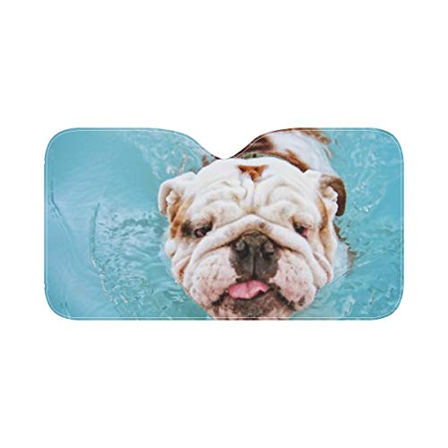 Sombrilla para parabrisas, perro divirtiéndose Piscina pública local Persiana plegable para automóvil Universal para automóviles Camioneta todoterreno, mantenga su vehículo fresco-55 X 30 pulgadas