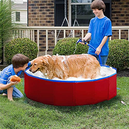 QWLHZW Piscina para Perros de plástico Duro Plegable, bañera portátil para niños Perros y Gatos, Piscina de vadear para Interiores y Exteriores (Color : Red)