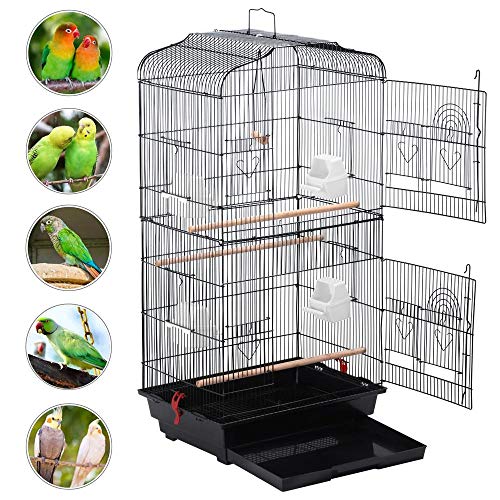 - Alimentación fácil: la jaula para aves contiene 4 puertas laterales con 4 alimentadores de plástico blanco para facilitar el cambio de comida y agua sin abrir las puertas grandes.