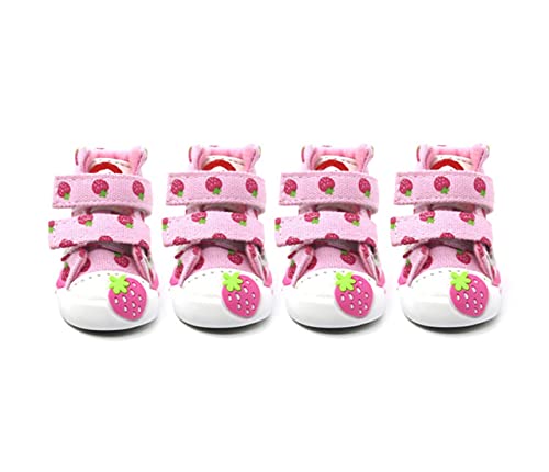 - Zapatos lindos del perro: zapatos del animal doméstico de la fresa de la lona, con pequeñas fresas impresas en el lienzo, y las fresas de PVC en la puntera, que muestran la ternura de perro y hacer que su perro en el foco de la multitud