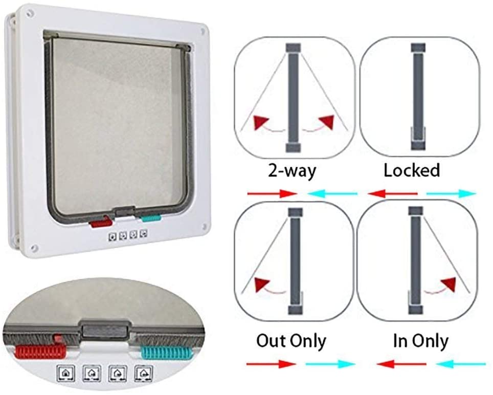 - 【 bloqueo de 4 Vías (in, Out, in/out, bloquear) 】 Con la gateras dispone de cuatro modelos para bloquear con los interruptores, solo oscilar, solo dentro y fuera y completamente dejado, fácil de controlar sus animales domésticos y su; con la gateras no dovevi más Cerrar y abrir la tu puerto todo el tiempo esperar hasta tus mascotas