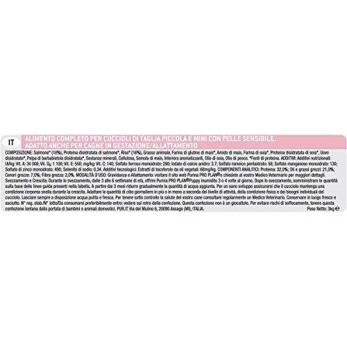 La Purina Pro Plan Puppy Small and Mini contiene una mezcla de proteínas de alta calidad para ayudar a los cachorros a construir y mantener músculos saludables. También contiene ácidos grasos omega-3 y -6 para mantener la piel y el pelaje saludables. Y está enriquecida con vitaminas, minerales y antioxidantes para ayudar a los cachorros a tener un sistema inmunológico fuerte.