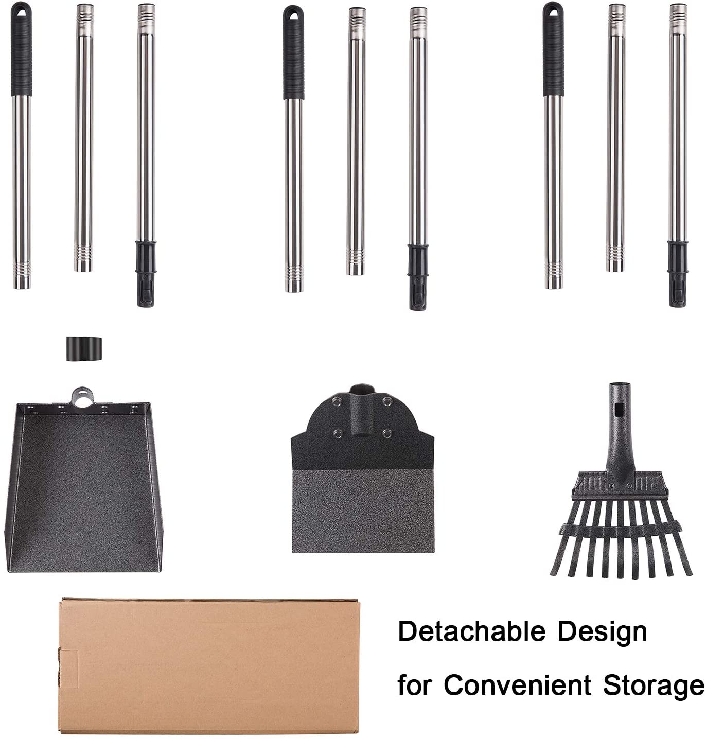 - 3 herramientas se adaptan a cualquier ocasión: una rake normal para recoger el poop fuera de la hierba, una cuchara plana para superficies planas,una bandeja puede recoger basura, como el patio.