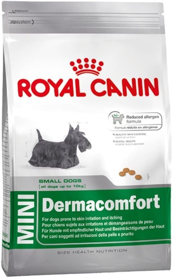 Royal Canin Dermacomfort Mini es una comida para perros en particularmente formulada para perros de razas miniatura con tendencia a tener problemas de piel. Los perros de razas miniatura tienen una piel muy delgada y sensible. Su metabolismo es muy rápido, lo que significa que pueden tener problemas para mantenerse hidratados. Esto puede hacer que su piel se seque y se agriete. La fórmula de Royal Canin Dermacomfort Mini está enriquecida con ácidos grasos esenciales para ayudar a mantener la piel hidratada y saludable. También contiene proteínas de alta calidad para ayudar a mantener la piel y el pelaje fuertes y sanos. Royal Canin Dermacomfort Mini también está enriquecida con vitaminas y minerales para ayudar a mantener el sistema inmunológico fuerte y saludable. Esta comida para perros es adecuada para perros de razas miniatura de 2 a 12 años de edad.