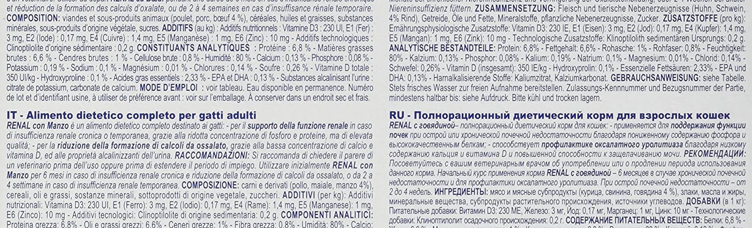 ROYAL CANIN Renal Feline Beef Comida para Gatos - Paquete de 12 x 85 gr - Total: 1020 gr
