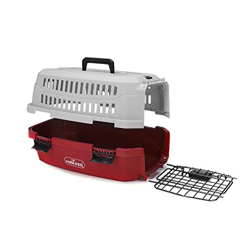 Nobleza - Transportin Gato Perro Mediano, Transportin para Gatos Perro Portátil y Transpirable, Mascotas Perros Gatos Accesorios, Transportín de Plástico, 58x38.7x33 CM, Rojo & Gris