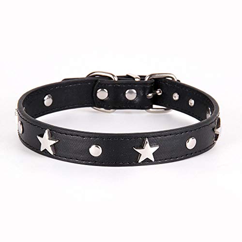 6 colores Collar de perro con tachuelas de estrellas Correa de cuero para el cuello de cachorro Collar de gato Collares ajustables para mascotas para perros pequeños medianos Correa de cuello-Negro_S