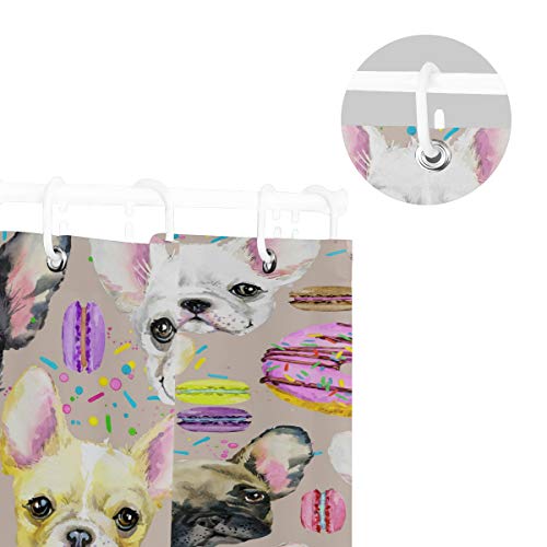 iRoad - Cortinas de ducha de tela impermeable con diseño de macarrones de perro, resistente al moho, cortinas de ducha con ganchos para cuarto de baño, 182.88 x 182.88 cm