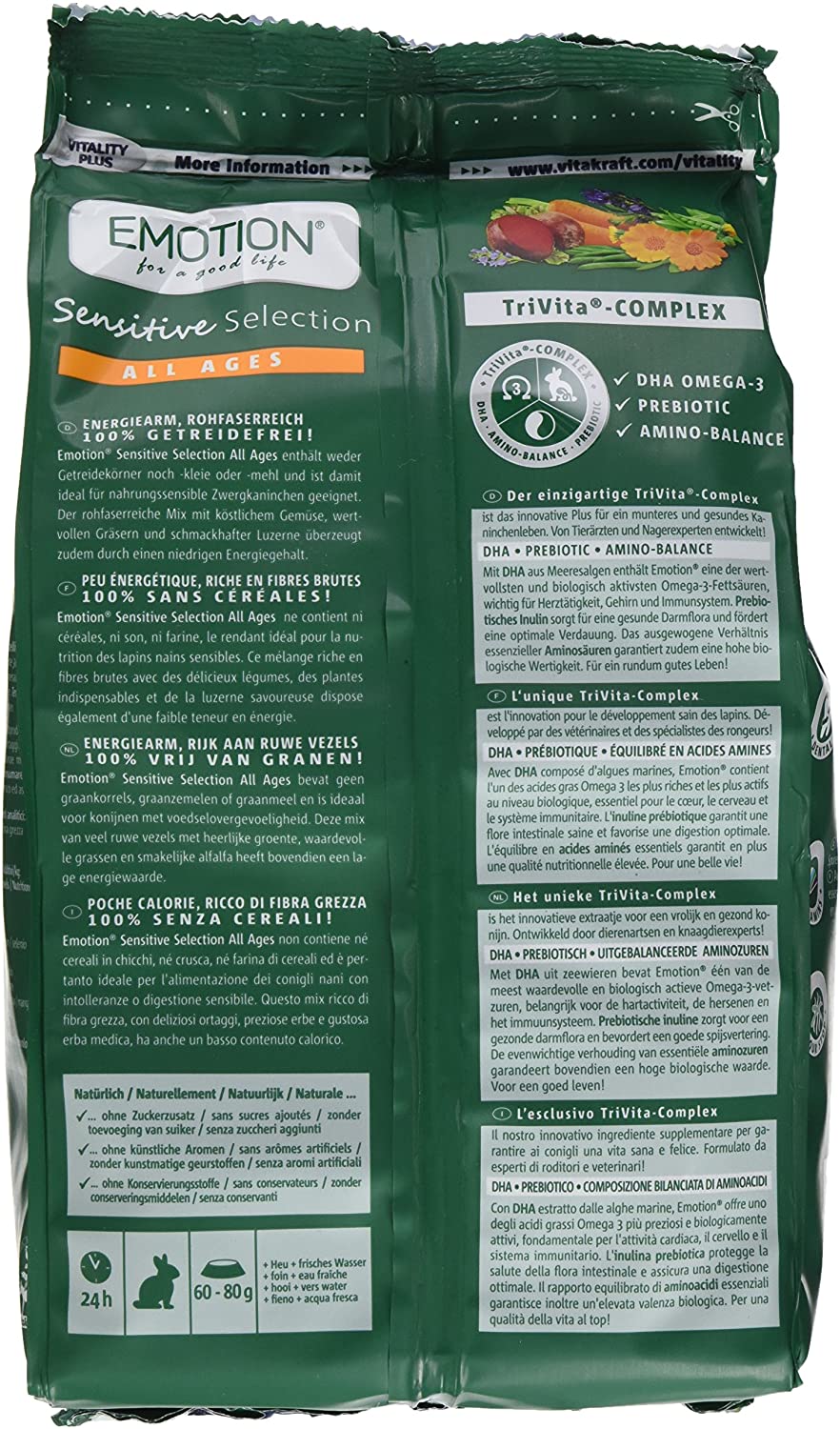 VITAKRAFT Emotion – Beauty Conejos Enanitos Adultos. 600 g