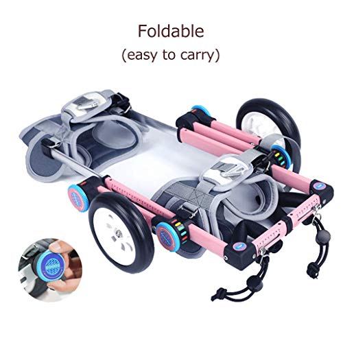 - 【LIGERA Y CONFORT】 La silla de ruedas para mascotas está hecha de aleación de aluminio, es antidesgaste, no se ensucia, no se oxida fácilmente y es duradera de usar. Portátil debido al marco de aluminio de grado aeronáutico liviano y de alta calidad para brindar la máxima y óptima comodidad. y movilidad para que la mascota disfrute de caminar y correr con ella.